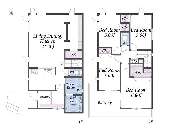 対面式キッチン採用のLDKは広々20畳。全室収納付きの新築分譲住宅です。