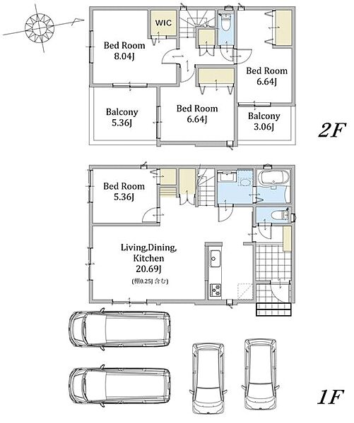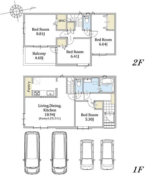 お車4台駐車可能なカースペース付。ZEH水準仕様の省エネ新築分譲住宅です。