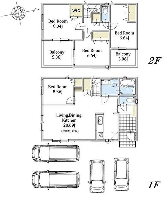 | 備考 | 計画道路にかかる(2号棟のみ)/うち2台軽自動車/景観法/文化財保護法/バルコニー2.48m2含(1号棟のみ)/通路提供部分0.17m2含(1号棟のみ)/敷地内電柱有(2号棟のみ)/管理番号:601321 | ||