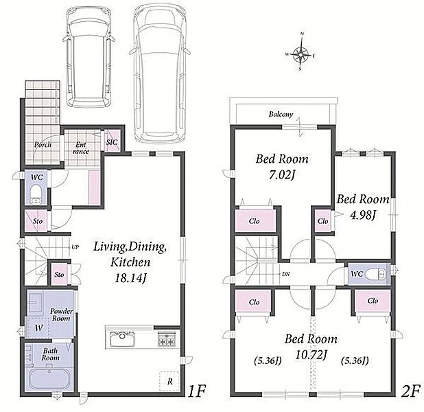 並列駐車2台可能。LDKは広々18畳以上。全居室収納付の新築分譲住宅です。
