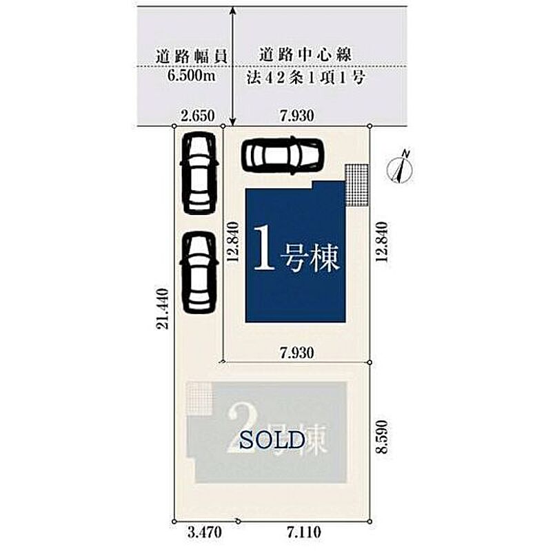 | 駐車場 | 1台(有/1台(1号棟)) | 道路の幅員 | 6.5m |