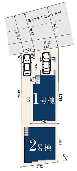 | 駐車場 | 1台(有/1台(2号棟)) | 道路の幅員 | 13.5m |