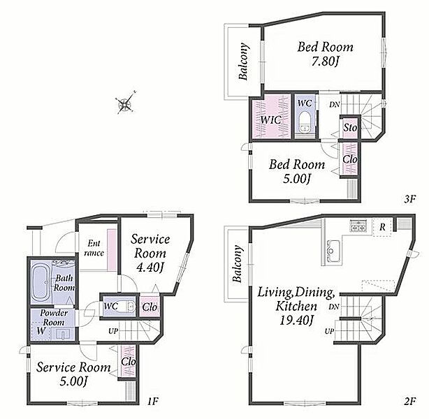 | 間取り | 2LDK+2S | 建物構造 | 木造、地上3階建て |
