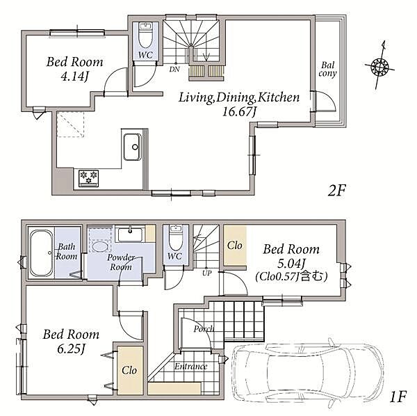 | 建物面積 | 71.93m2~76.93m2 | 土地面積 | 73.89m2~80.04m2 |