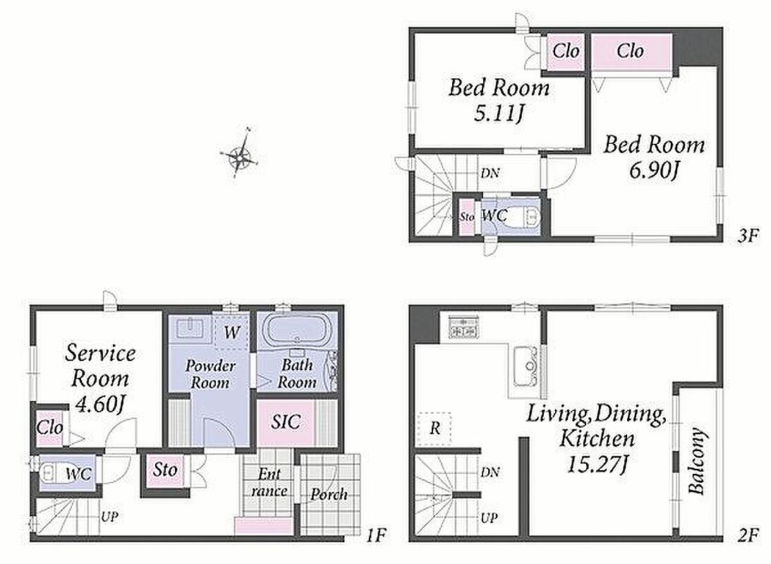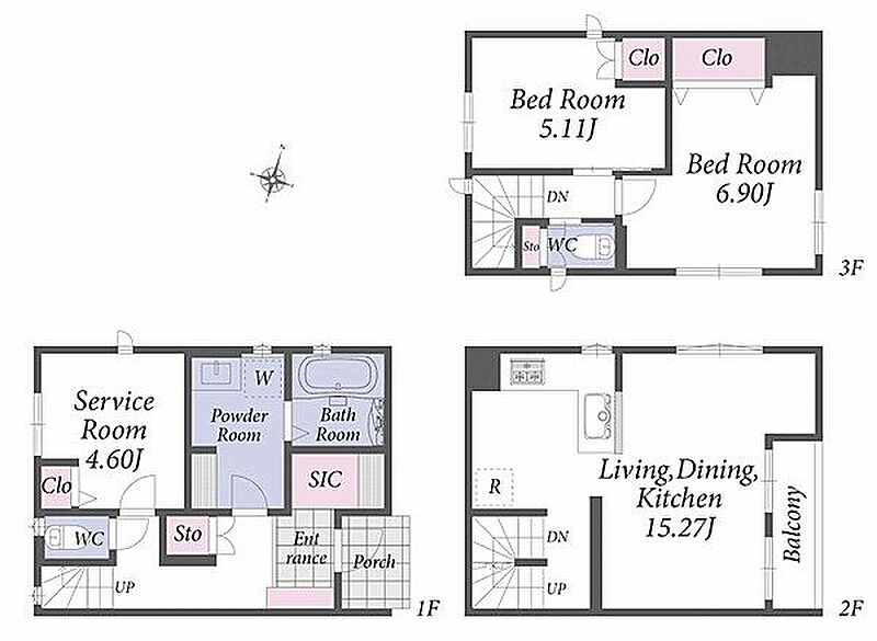| 間取り | 2LDK+S | 建物構造 | 木造、地上3階建て |