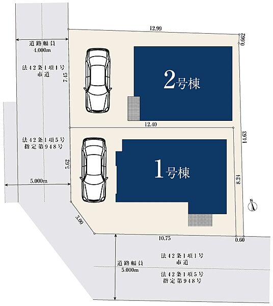 | 駐車場 | 1台(有/1台(1・2号棟)) | 道路の幅員 | 4m~5m |
