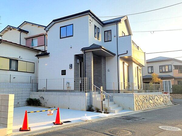 駐車スペース2台分有。南西向きで陽当り良好な2階建ての新築戸建です。