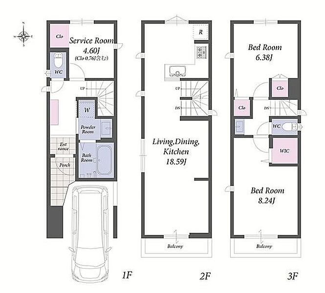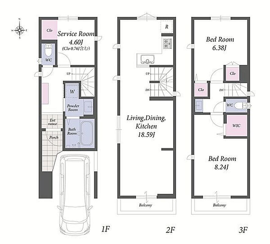 | 間取り | 2LDK+S | 建物構造 | 木造、地上3階建て |