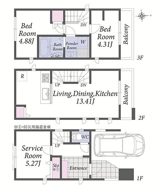 | 駐車場 | 1台(有/1台(1・2号棟)) | 道路の幅員 | 3.3m |