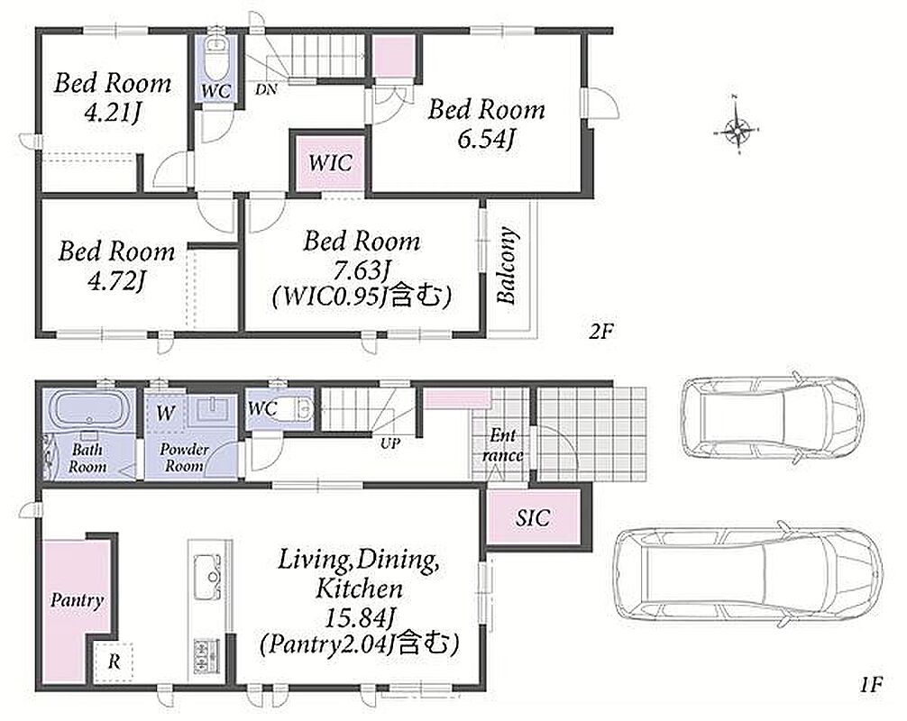 収納に便利なパントリー付。並列駐車2台可能。1坪バスルーム採用の新邸です。