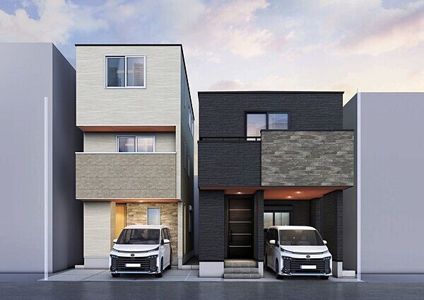 | 備考 | 車庫等6.09~13.47m2含/うち1台軽自動車(1号棟のみ)/景観法/宅地造成工事規制区域/準防火地域/バルコニー3.51m2含(1号棟のみ)/通路提供部分0.28m2含(2号棟のみ)/私道部分9.93~11.95m2/管理番号:603777 | ||