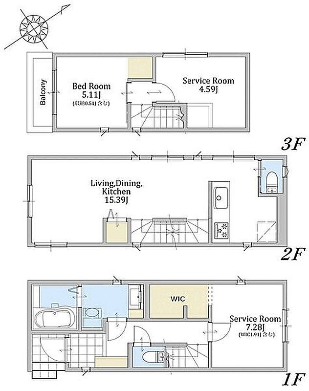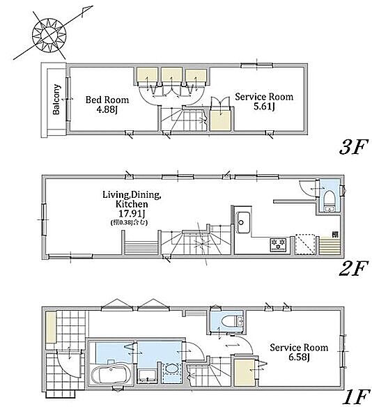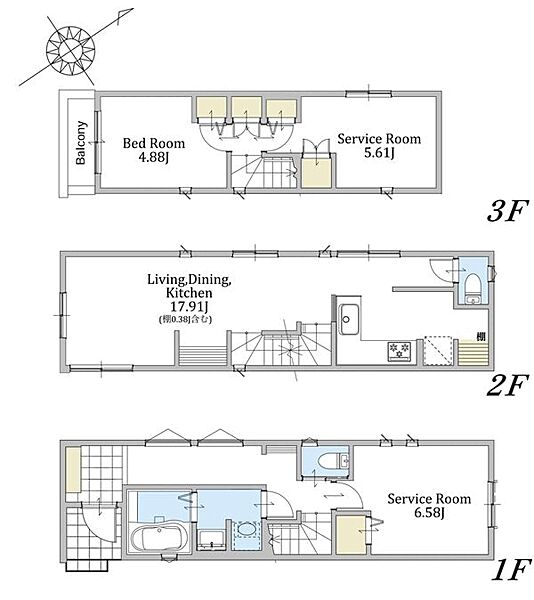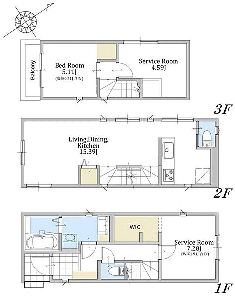 | 間取り | 1LDK+2S | 建物構造 | 木造、地上3階建て |