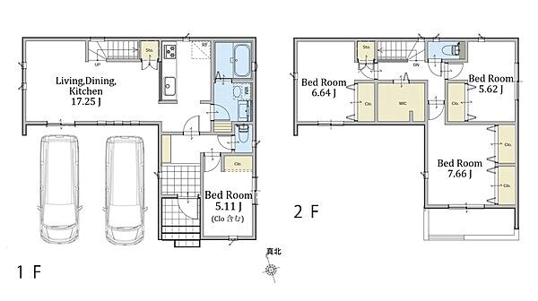 並列駐車可能なカースペース付き。LDKはゆとりある17畳の新築戸建です。