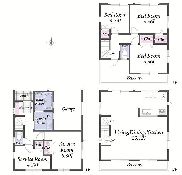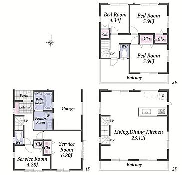 | 間取り | 3LDK+2S | 建物構造 | 木造、地上3階建て |