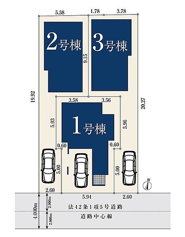 | 駐車場 | 1台(有/1台(1~3号棟)) | 道路の幅員 | 4m |