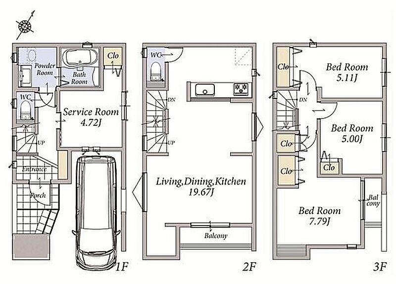 | 間取り | 3LDK+S | 建物構造 | 木造、地上3階建て |