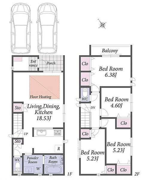 | 建物面積 | 89.65m2~94.05m2 | 土地面積 | 47.74m2~95.83m2 |