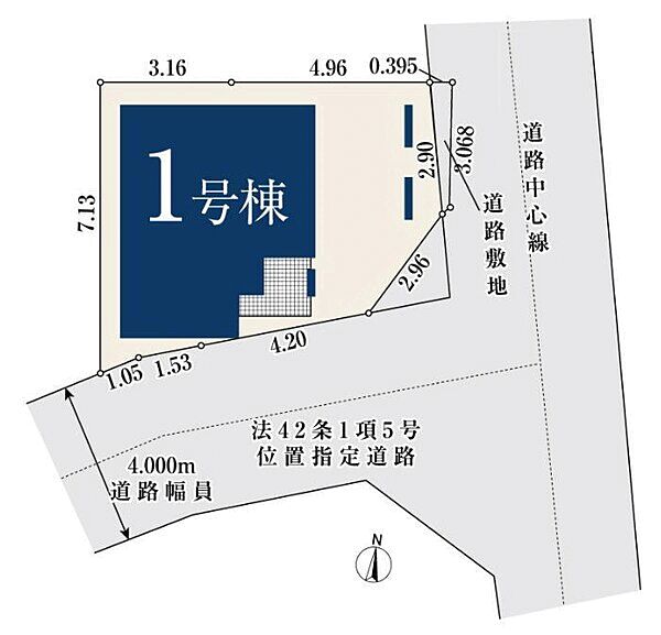 | 駐車場 | 1台(有/1台(1号棟)) | 道路の幅員 | 3.8m~4m |
