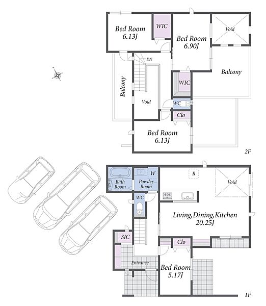 並列3台駐車可能なカースペース付き。2階建て4LDKの新築戸建てです。