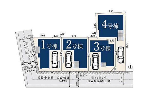 | 備考 | 一部路地部31%含/一部車庫等11.17~12.93m2含/景観法/宅地造成工事規制区域/準防火地域/バルコニー1.55m2含(1号棟のみ)/バルコニー2.48m2含(2・4号棟)/バルコニー2.07m2含(3号棟のみ)/管理番号:604302 | ||