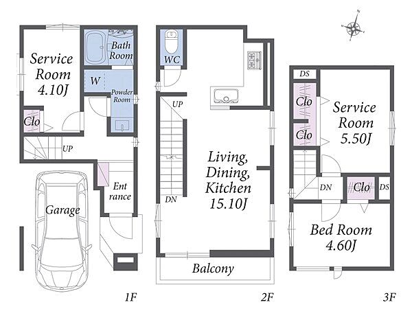 | 間取り | 1LDK+2S | 建物構造 | 木造、地上3階建て |