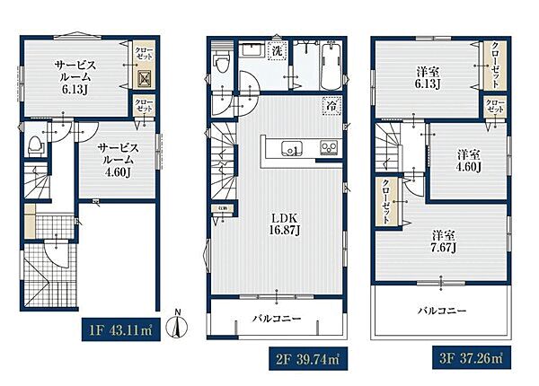 | 間取り | 3LDK+2S | 建物構造 | 木造、地上3階建て |