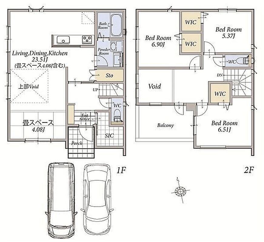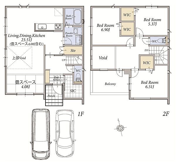 1階LDKは広々18畳以上!並列駐車2台可能な2階建の新築分譲住宅です。