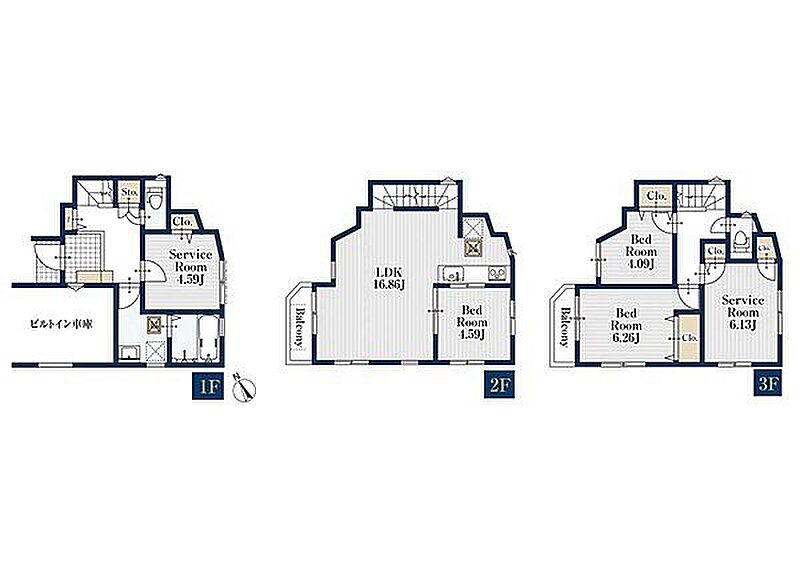 | 間取り | 3LDK+2S | 建物構造 | 木造、地上3階建て |