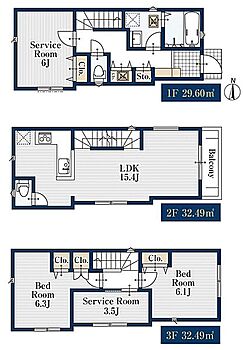| 間取り | 2LDK+2S | 建物構造 | 木造、地上3階建て |