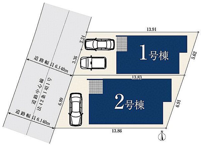 | 駐車場 | 1台 ~ 2台(有/1台(2号棟)、有/2台(1号棟)) | 道路の幅員 | 6.1m |