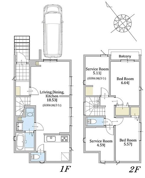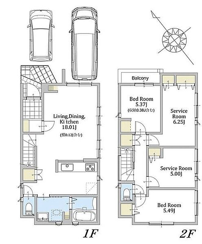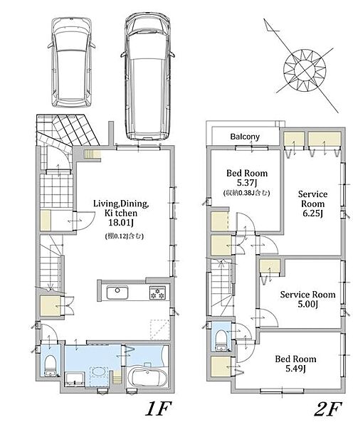 | 駐車場 | 1台 ~ 2台(有/1台(1号棟)、有/2台(2号棟)) | 道路の幅員 | 5.9m |