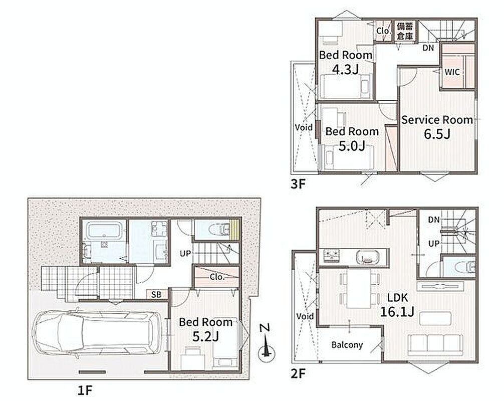 | 間取り | 3LDK+S~4LDK | 建物構造 | 木造、地上3階建て |