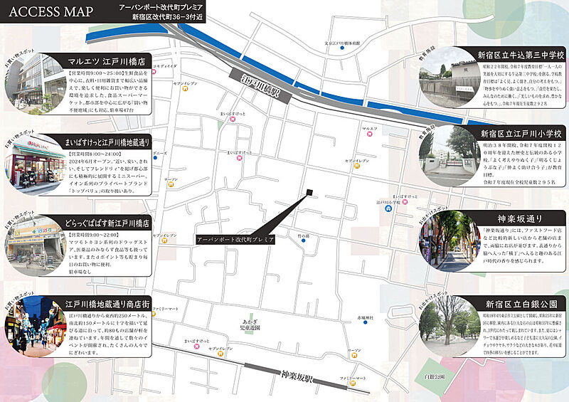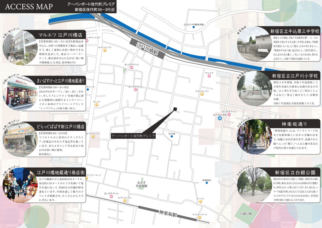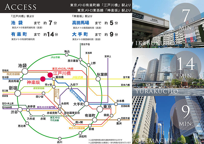 東京メトロ有楽町線「江戸川橋」駅 徒歩4分 東京メトロ東西線「神楽坂」駅 徒歩7分 都営大江戸線「牛込神楽坂」駅 徒歩14分 |