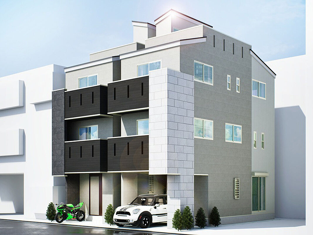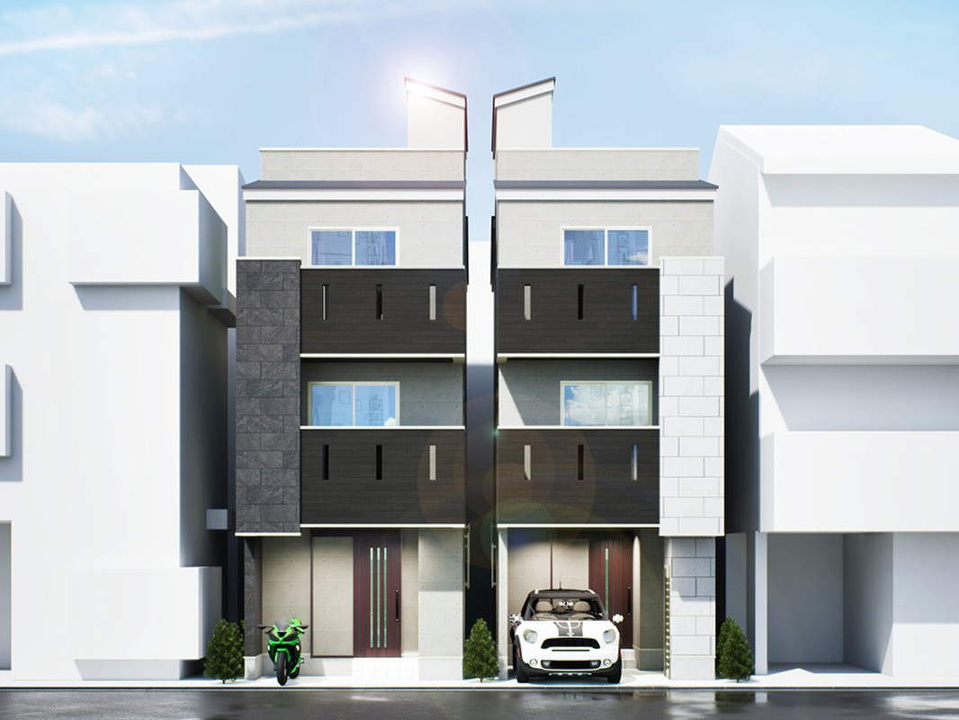 各棟LDK18.2帖、ルーフバルコニー付き、採光を意識した3部屋プラスLDKのデザイナーズハウス誕生。全室6帖以上のゆとりあるA号棟と車庫付きのB号棟。ライフスタイルに合わせた全2邸