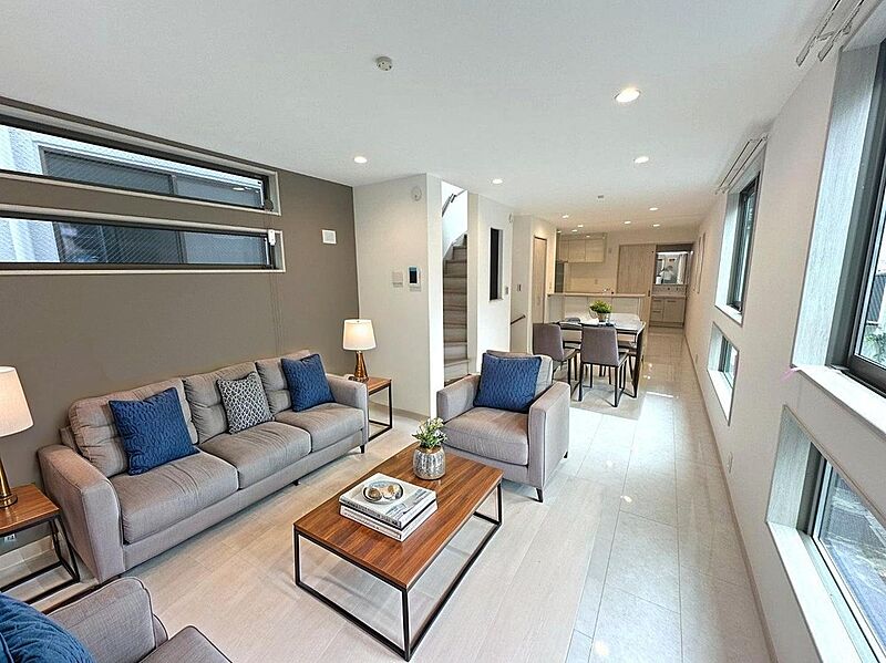 各棟18.2帖と広々。陽光をしっかり取り入れた、明るいリビング...