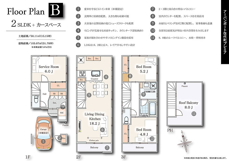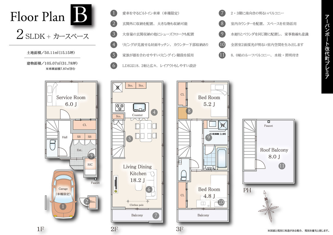 | 建物面積 | 105.07m2~106.27m2 | 土地面積 | 50.11m2 |