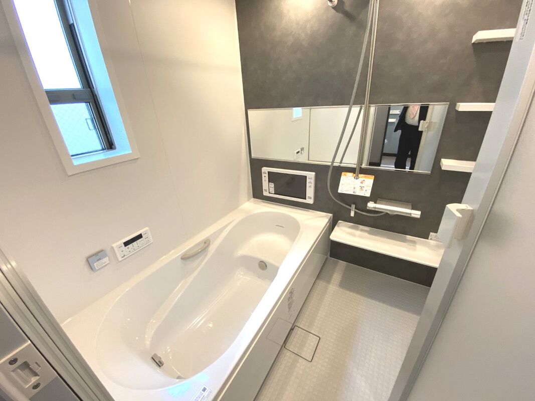 一日の疲れを癒すバスルームは1坪の広々タイプ。浴室TVとジェッ...