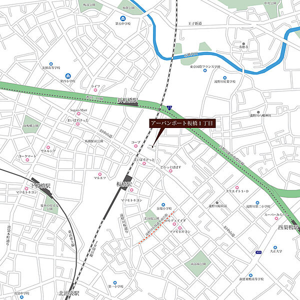 JR埼京線「板橋」駅 徒歩4分 都営三田線「新板橋」駅 徒歩4分 東武東上線「北池袋」駅 徒歩12分 |