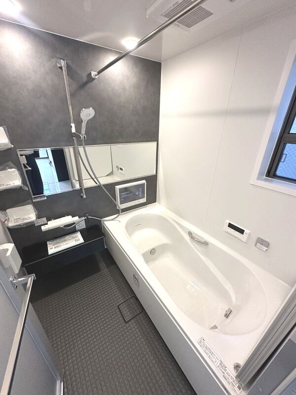 一日の疲れを癒すバスルームは1坪の広々タイプ。浴室TVとジェッ...