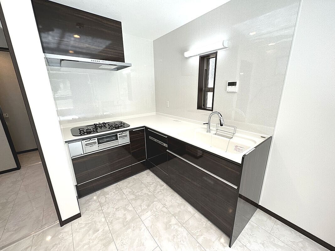 リビングが見渡せる対面キッチン、お料理しながら家族の会話も弾み...