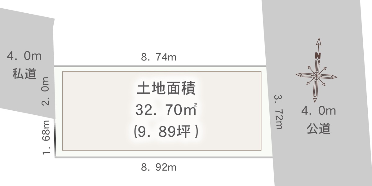 | 駐車場 | - | 道路の幅員 | 東側4.0m公道、西側4.0m公道 |