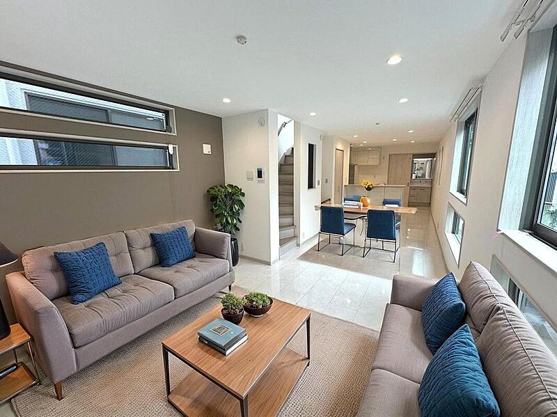 リビングが見渡せる対面キッチンなど嬉しい仕様。シューズクローク・全居室収納他、各所に豊富な収納を意識した空間設計。南6m公道面につき陽当り良好!