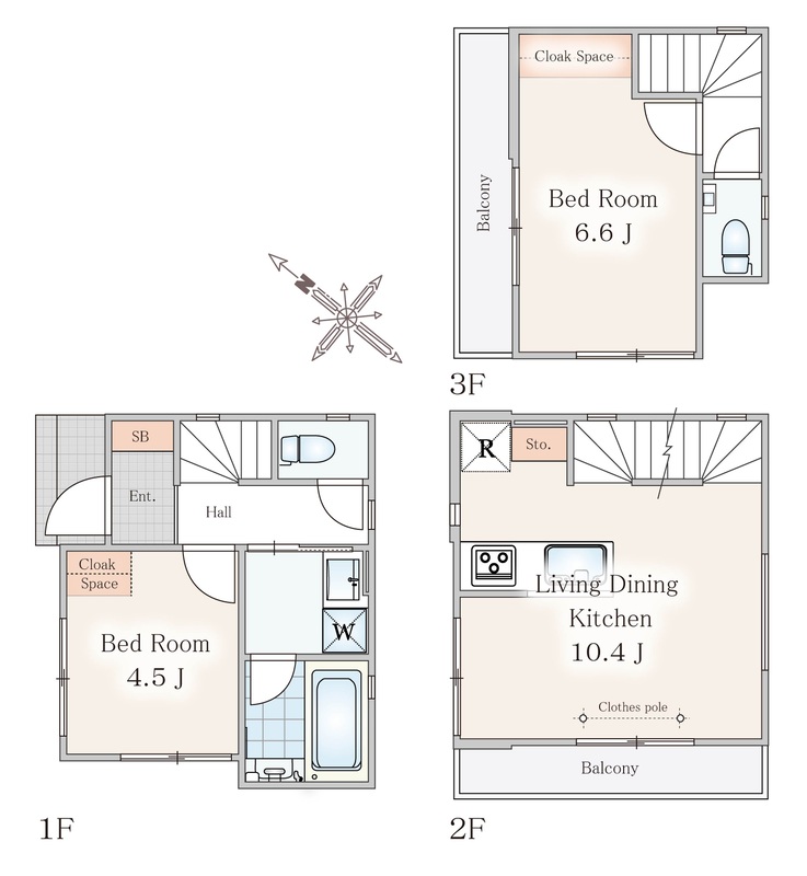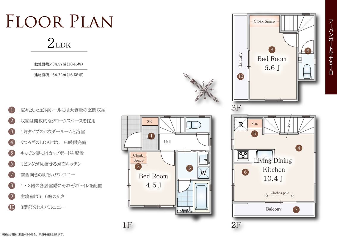 コンパクトながらゆとりあるプラン。プライバシーが守られる2階リビングは三面採光の明るい空間。オープンクロークを採用する事で開放感を演出。バルコニーも2ヶ所設置!