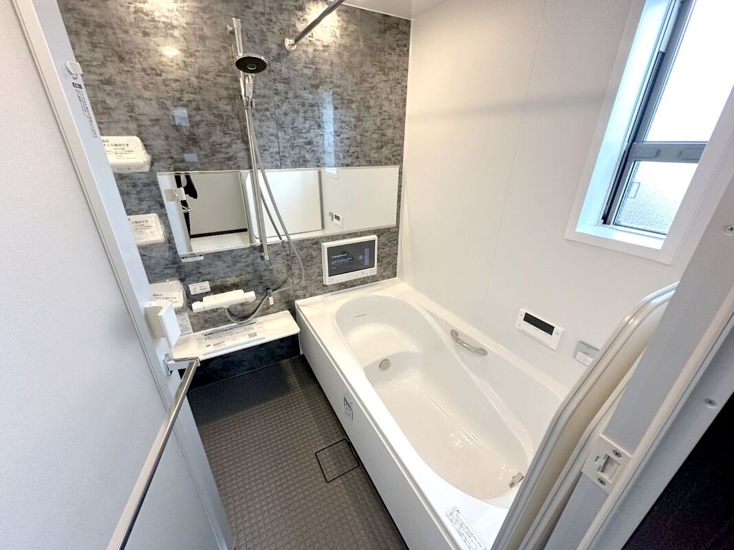 一日の疲れを癒すバスルームは1坪の広々タイプ。浴室TVとジェッ...