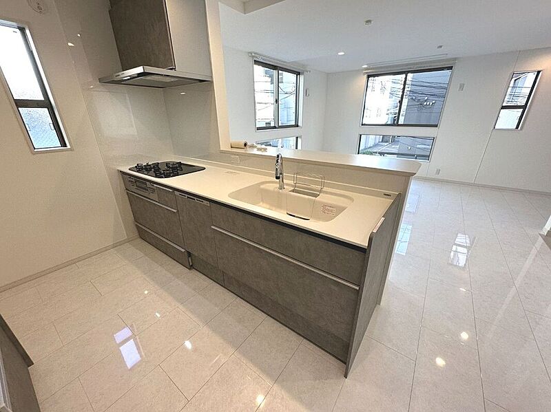 リビングが見渡せる対面キッチン。食洗機・タッチレス水栓・浄水器...