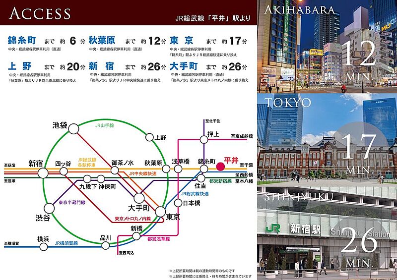 JR総武線利用で都心へ快適アクセス!駅周辺には商業施設も揃い、毎日のお買い物も便利です。