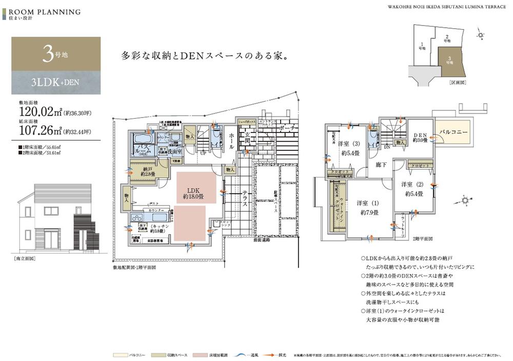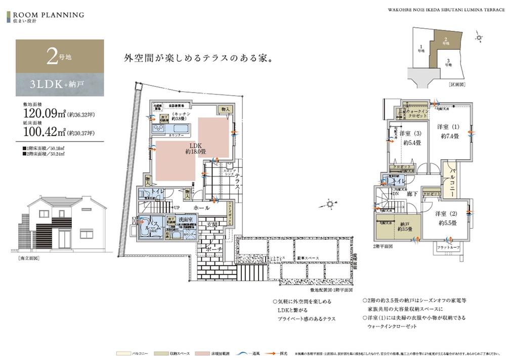 | 建物面積 | 100.42m2 ・ 107.26m2 | 土地面積 | 120.48m2 ・ 120.72m2 |