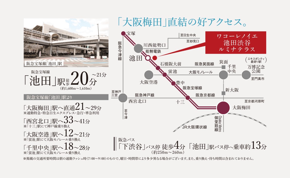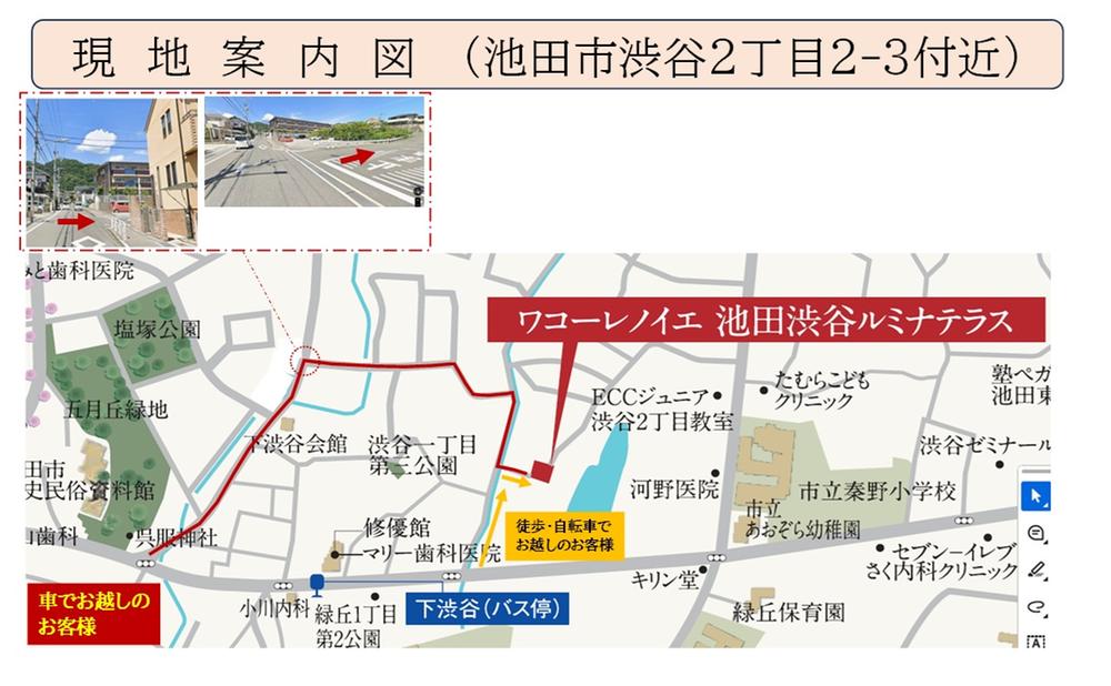 阪急宝塚本線「池田」駅 徒歩20分~21分 バス 徒歩4分~4分 阪急バス「下渋谷」歩4分 |