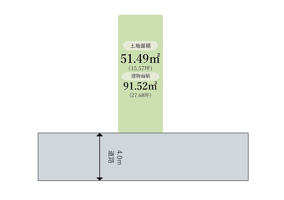 | 建物面積 | 91.52m2 | 土地面積 | 51.49m2 |