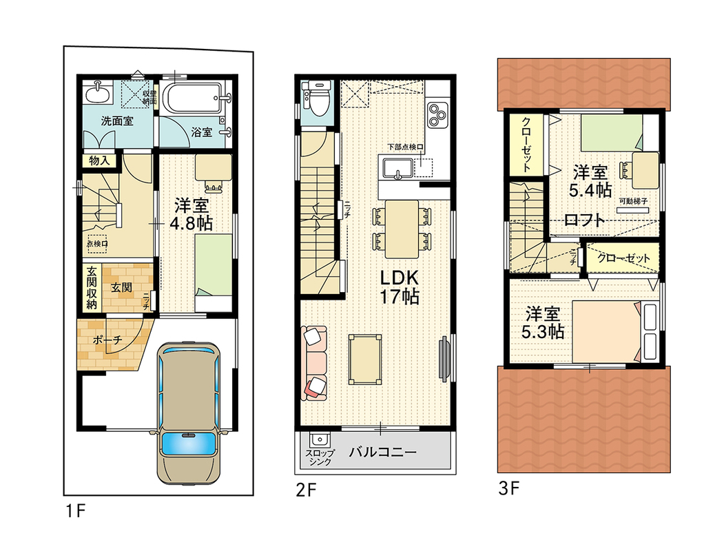 - ※完成予想図やCG合成画像は、門塀・植栽・庭・外観等、実際とは多少異なる場合があります。
